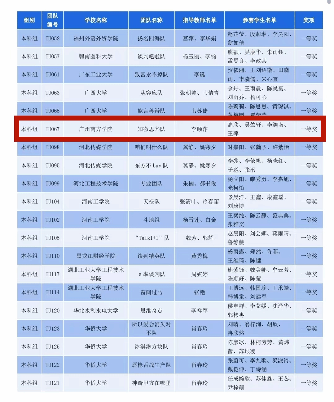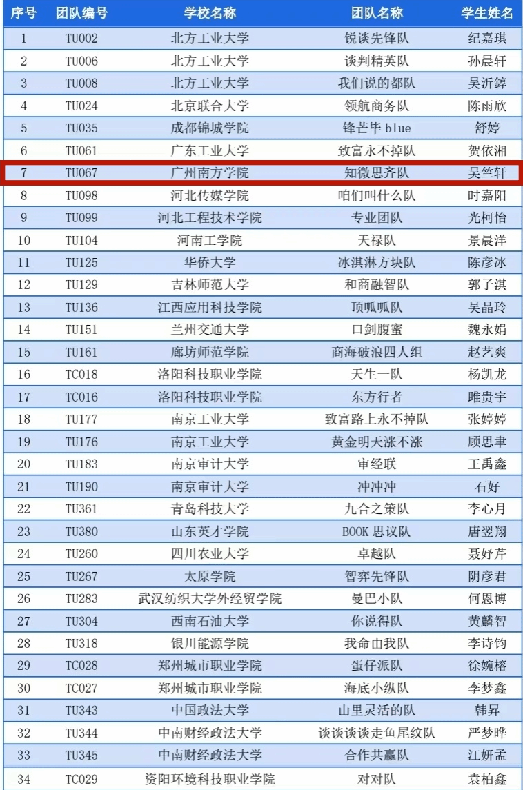 由我校williamhill中文国际经济与贸易专业高欣、吴竺轩、王萍、李迦南同学组成的参赛队伍——“知微思齐队”,在李顺萍老师指导下,荣获本赛事商务谈判竞赛全国一等奖佳绩,并且吴竺轩同学还获得了最佳谈判手,团队努力数月,辛勤付出,终不负所望。