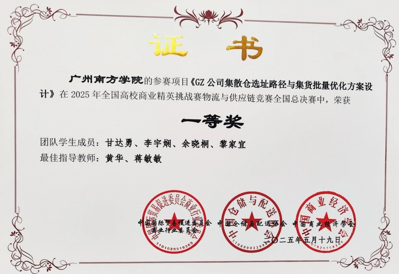 2025年5月17日至18日,2025年全国高校商业精英挑战赛物流与供应链竞赛全国总决赛在线上如火如荼地开展。在这场知识与技能的较量中,我院由物流管理和电子商务专业学子组成的两支参赛队伍表现出色,在本次比赛中均获得一等奖的殊荣。