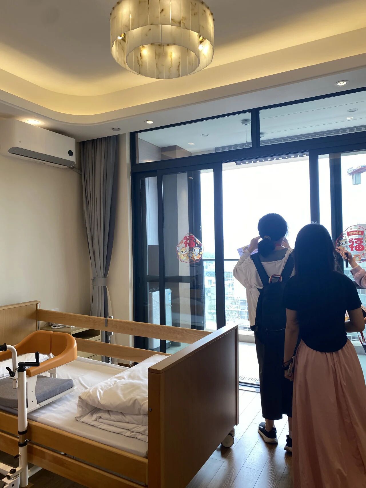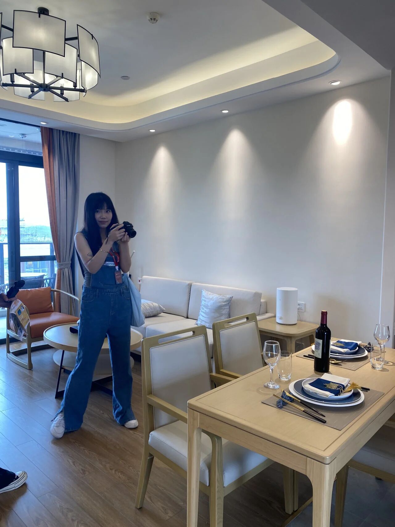 最后,大家参观了样板房,房间装修设计主要围绕适老化、舒适化、生活化三大核心来打造。楼道安装了适老化扶手,每个房间门口的置物台,让入住的长辈可以摆放自己喜欢的装饰品,以便于辨别房间。房间整体色调温馨雅致,中式装修风格更具传统文化气息。首次参观后,各参赛团队连续两周进行自由拍摄。