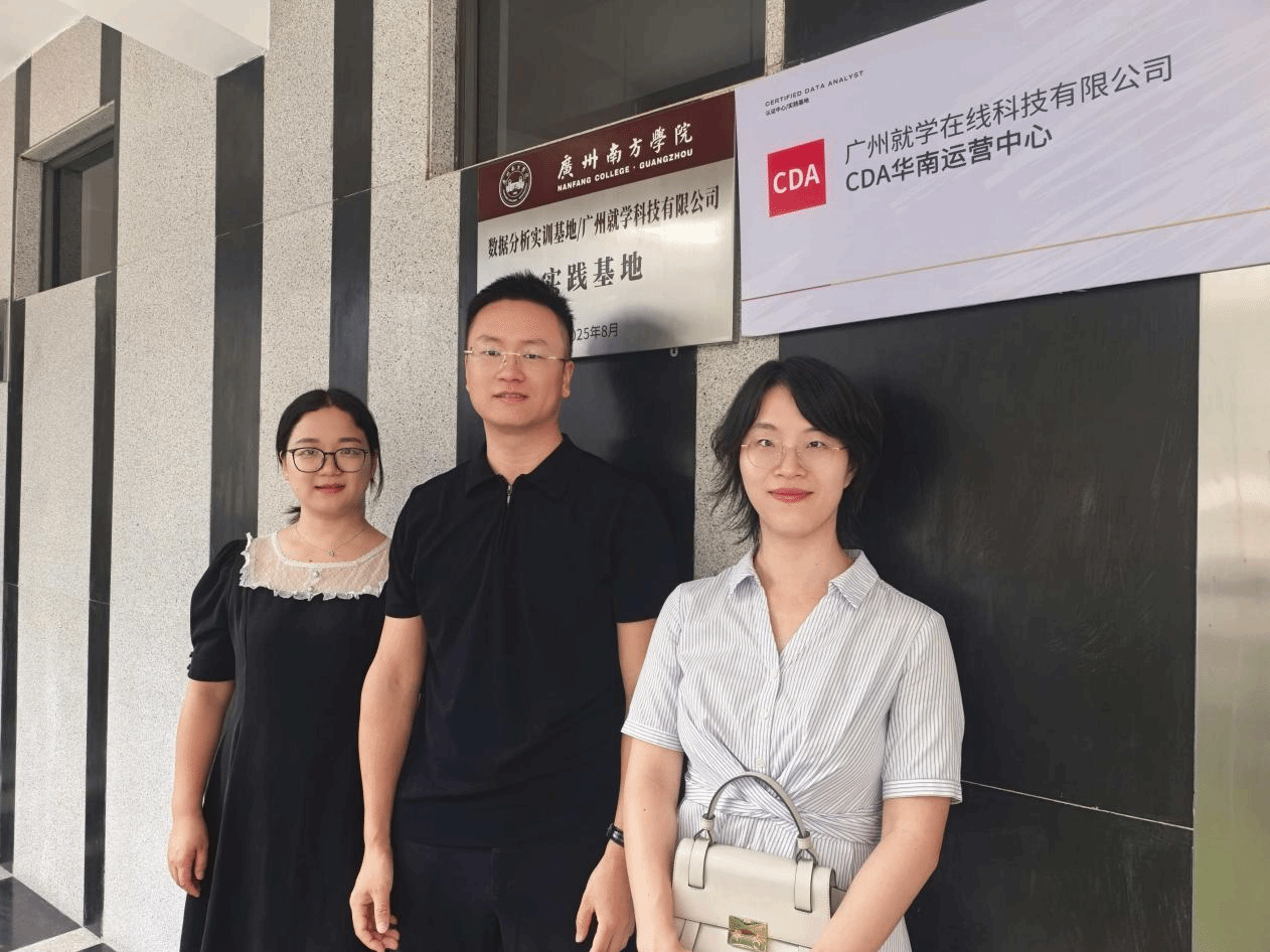 为深化产教融合,加强校外实践教学基地建设,2025年9月18日,williamhill中文协同教务处,由数字经济专业主任周瑛、骨干教师黄小丽与教务处代表陈潇组成调研组,共同走访了位于广州市天河区的校级优秀实践教学基地——"广州就学科技有限公司数据分析实训基地"。