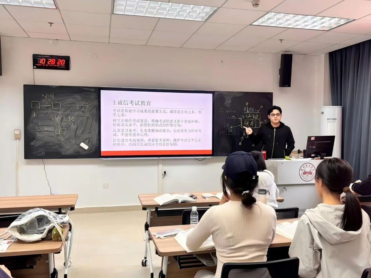 此外,多场会议均组织签署《诚信考试承诺书》,金融学、物流管理专业还在会议中详细解读了学业预警与作弊处分等级,强化规则意识,进一步深化规则意识。这些活动通过案例教育、方法引导与集体承诺相结合的方式,切实助力学生端正态度、规范行为,为期末阶段的学习与评估工作奠定了扎实基础。