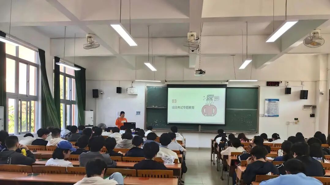 各班在学风建设中积极推行“小组互助”与“榜样引领”机制,组建学习小组开展读书分享,营造勤学氛围。网络文明教育以真实处分案例为镜,警示学生“网络非法外之地”,并组织签署行为承诺书,引导学生自觉抵制谣言。诚信考试环节,各班集中学习制度、签署承诺书,并结合作弊被开除等案例,强调“诚信关乎长远发展”。