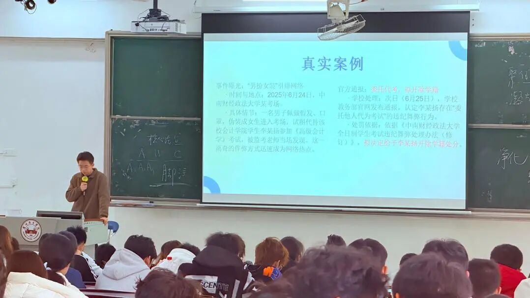 各年级班会采用案例化、互动化的形式,有效提升了教育的实际效果,为期末学风建设及评估工作奠定了坚实基础。辅导员还向学生寄语:“要将个人成长与学校发展紧密结合”将规范意识内化于心、外化于行,为学校的高质量发展贡献自己的青春力量。