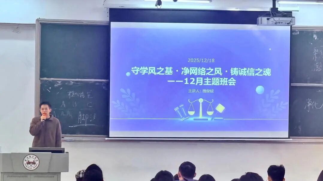 12月,我院25级各班围绕“班风学风、文明上网、诚信考试”三大主题开展系列班会。活动覆盖金融工程、物流管理、电子商务等多个专业,结合合格评估要求,通过案例讲解与行为引导,全面强化学生规范意识与综合素养。