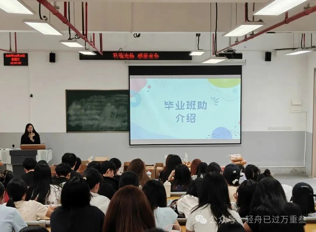 为更精准地服务毕业班学生,会议隆重介绍了各班的毕业班班助,他们将成为信息传达、材料收集、班级工作开展的小助手,做同学们的“最强后援团”。会上,黄老师还组织大家现场完成了《毕业生推荐表》的填写,帮助同学们提前备好求职材料,自信迈向未来。