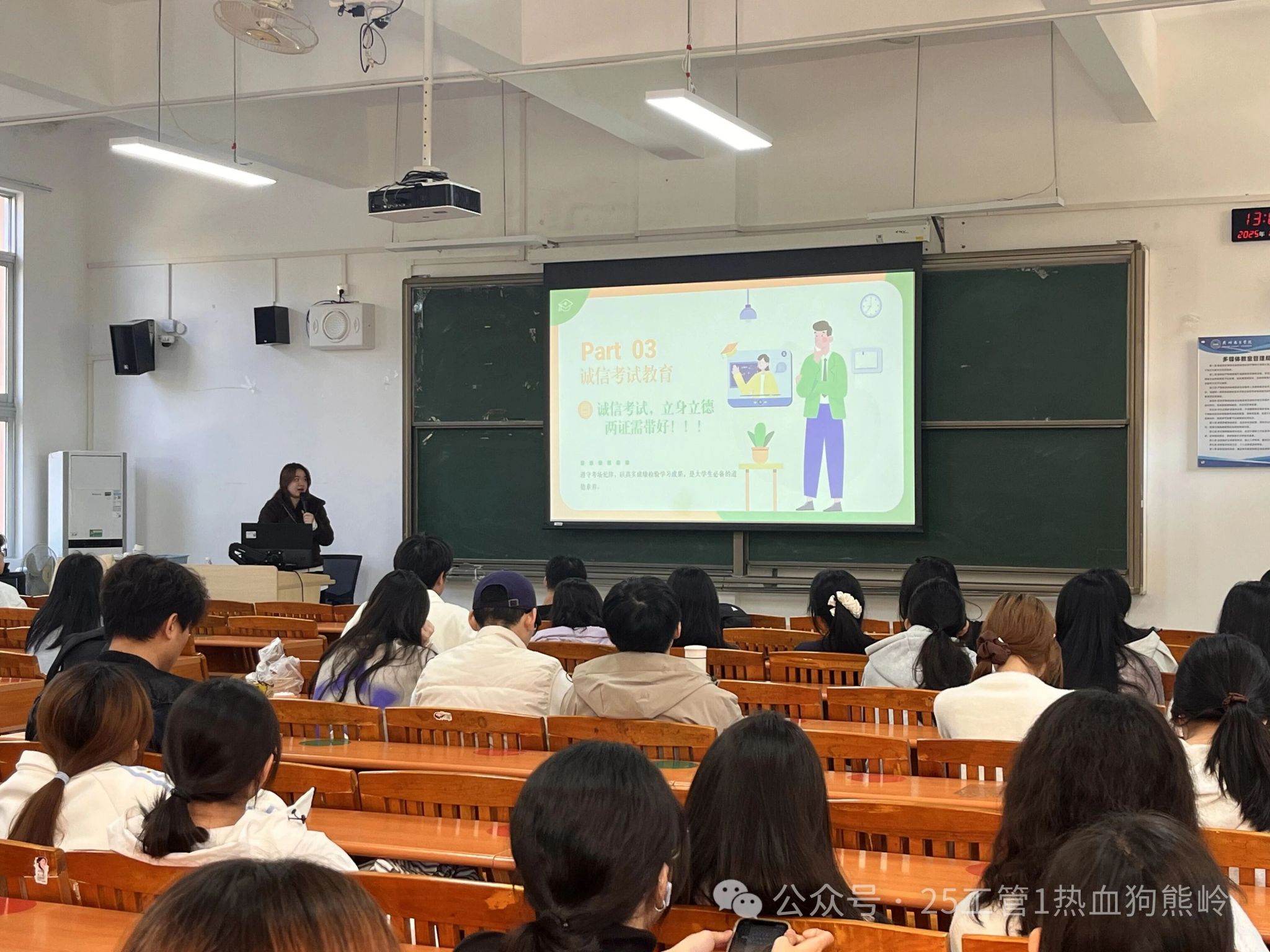 临近期末,诚信考试教育成为会议的重点内容。会议重申了考场纪律与作弊处罚规定,强调诚信是⽴身之本。考试不仅是对知识的检验,更是对品德的考验,希望同学们端正备考态度,认真复习,以真实的成绩展现学习成果,共同维护公平公正的考试环境。