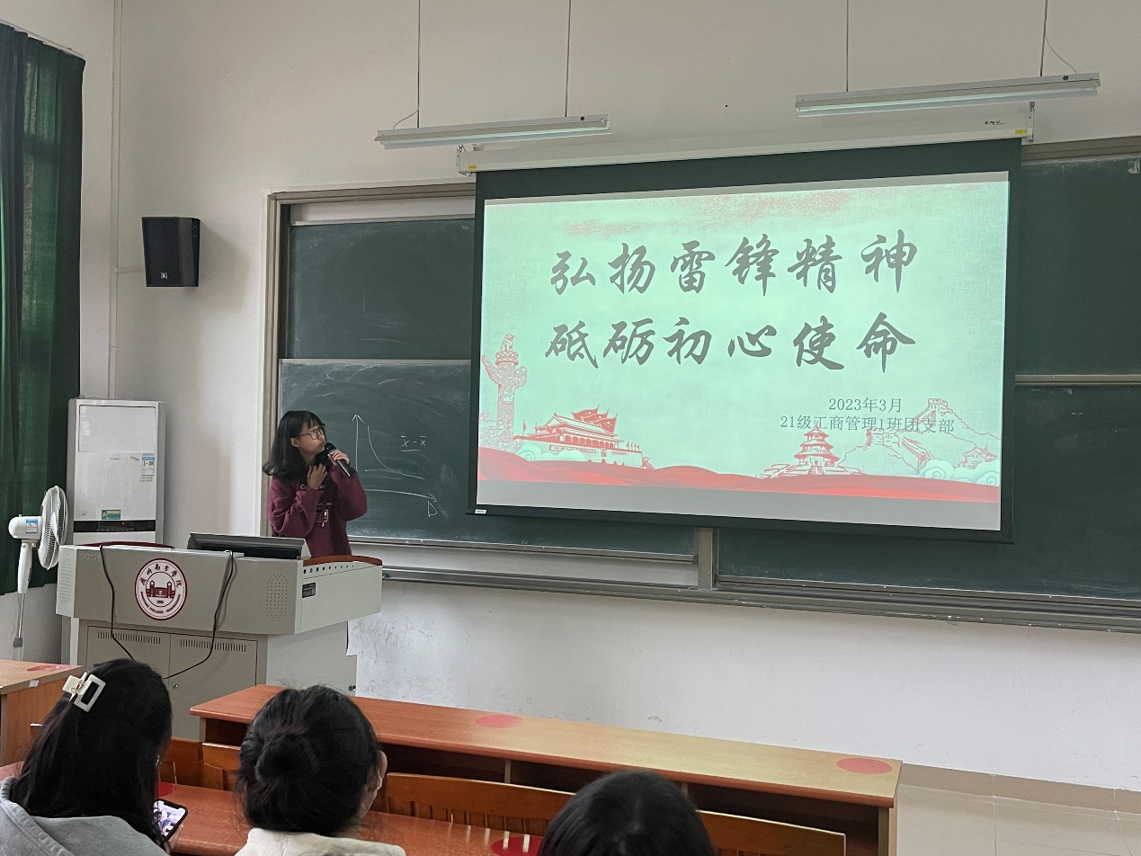 首先,我们在团支书的带领下认识“什么是雷锋”。主要介绍雷锋同志的生平,重温了雷锋同志的一生,了解雷锋同志苦难的童年,奋斗的青春岁月,以及不幸的意外牺牲。
