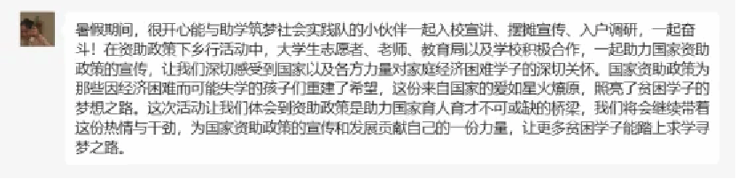 志愿队希望通过本次实践,能够让更多人了解、理解国家资助政策,让真正有需要的学生与家庭受益于此,以此打破“经济困难”给学生竖起的求学屏障,进一步助力教育公平。在未来的日子里,让我们携手前行,继续深化国家资助政策的宣传和实施,让更多的群众受益,让更多的孩子能够享受到公平而有质量的教育机会。