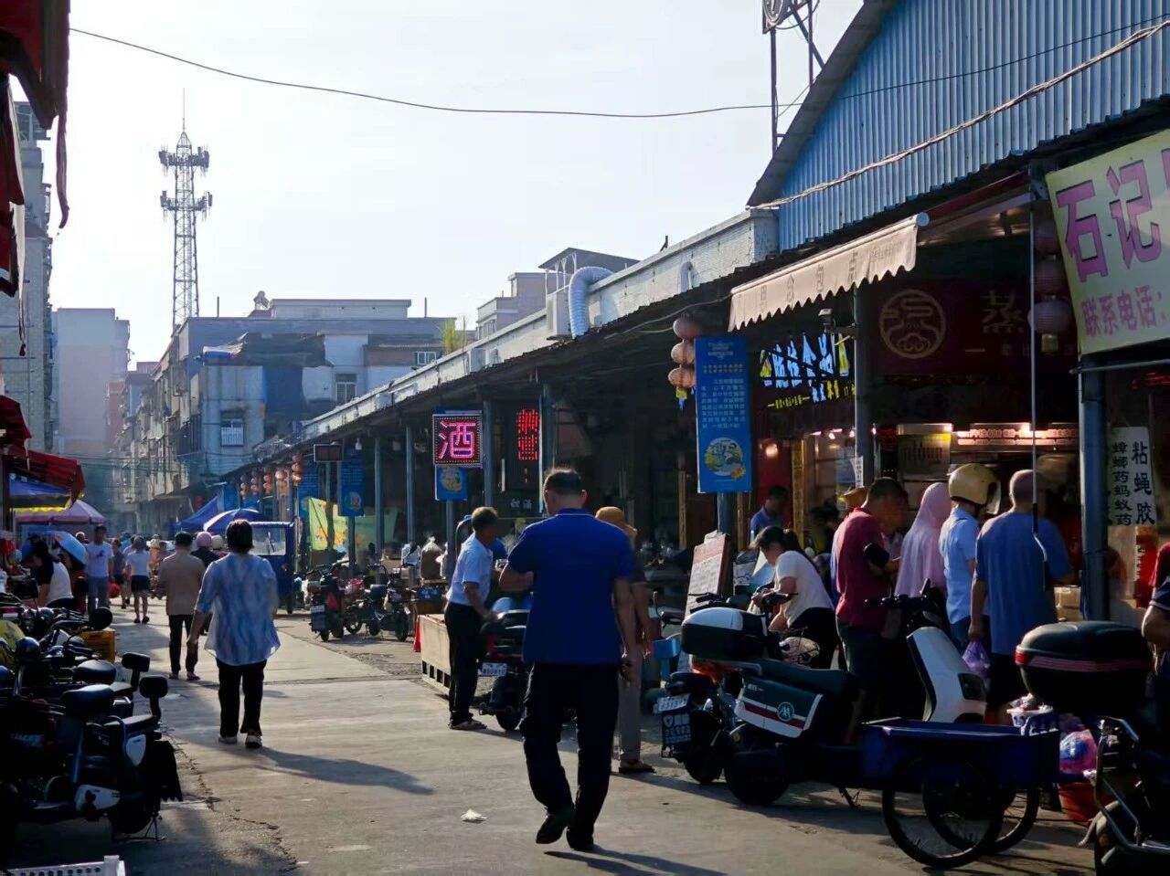 7月8日,天刚破晓,我们已整装集合,朝着杨和镇“菜集·人和市场”出发。搬运货物的商贩扛着沉甸甸的蔬菜筐穿梭往来;卸货的三轮车旁,捆扎整齐的青菜、水灵的瓜果堆成山,清新的气息扑面而来。早餐店的阿姨远远瞧见我们,就笑着招呼“靓仔靓女来啦”,手里的活计没停,却总不忘多问一句“要不要先喝碗热豆浆”我们举起镜头,记录下这一切,汗水浸湿的衣衫、此起彼伏的吆喝、递来递往的零钱,还有那份藏在烟火里的热忱与鲜活。