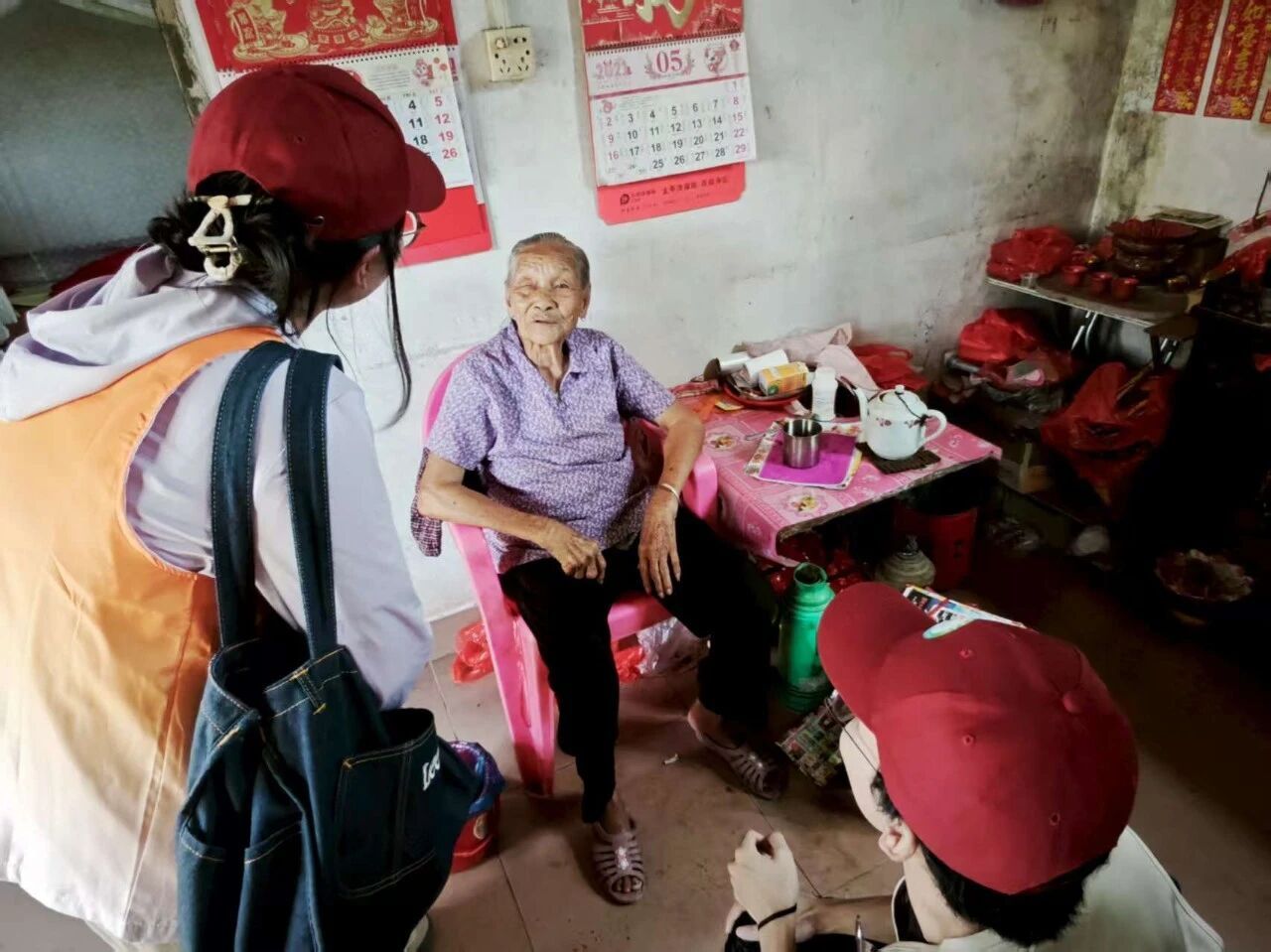 踏入清泰村,我们沿着蜿蜒村道,一家又一户地寻访,倾听村民们的生活故事。在一间老屋前,八十岁的老奶奶坐在门边,银发苍苍,满脸慈祥,眼角的皱纹里都刻着岁月的痕迹。她热情地邀请我们进屋聊天,又带我们去找她的闺蜜。两位老人相见,笑容满面,亲昵地聊着彼此的生活。我们在旁静静记录,感受着岁月沉淀的温暖。