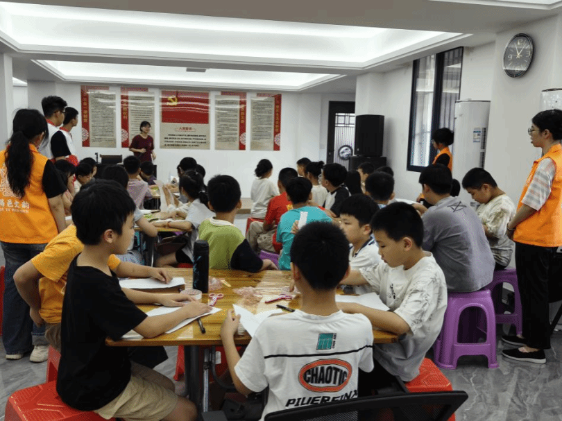 下午,先锋队抵达进东社区开展义教活动。志愿者们以揭阳古建筑绘画、地方历史故事讲解为主要内容,通过互动教学激发孩子们对本土文化的兴趣。课堂上,孩子们积极参与绘画创作与知识问答,现场气氛活跃,有效推动了传统文化在青少年群体中的传播。