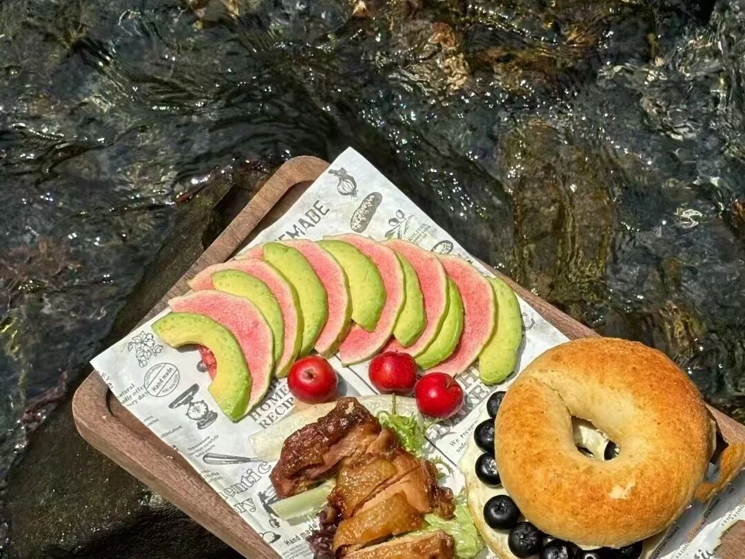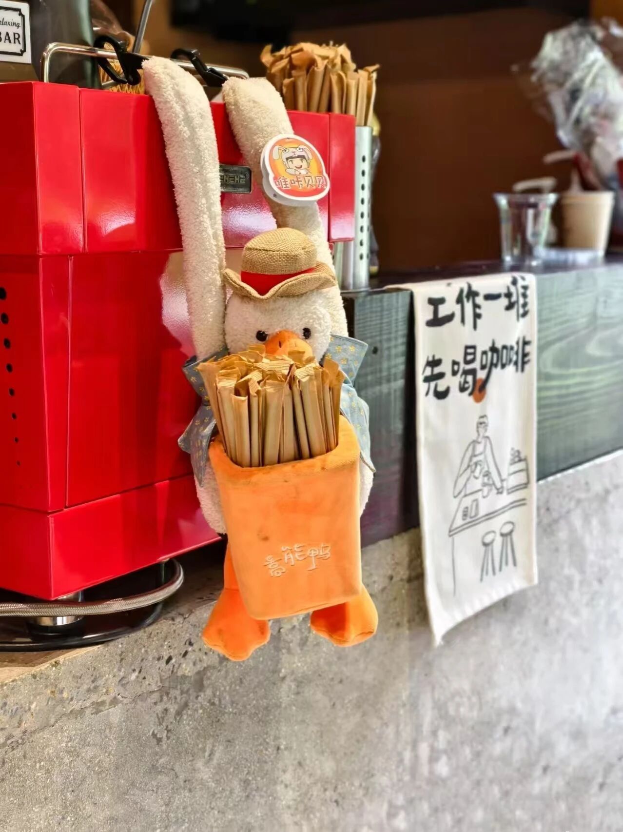 不仅如此,餐厅里喷香Q弹的蛋糕端上来时,雪白的蛋糕上面抹着奶油鸭子,这是斑斓餐厅的文创特色,轻咬一口,甜而不腻,像是将盛夏放在舌尖上。