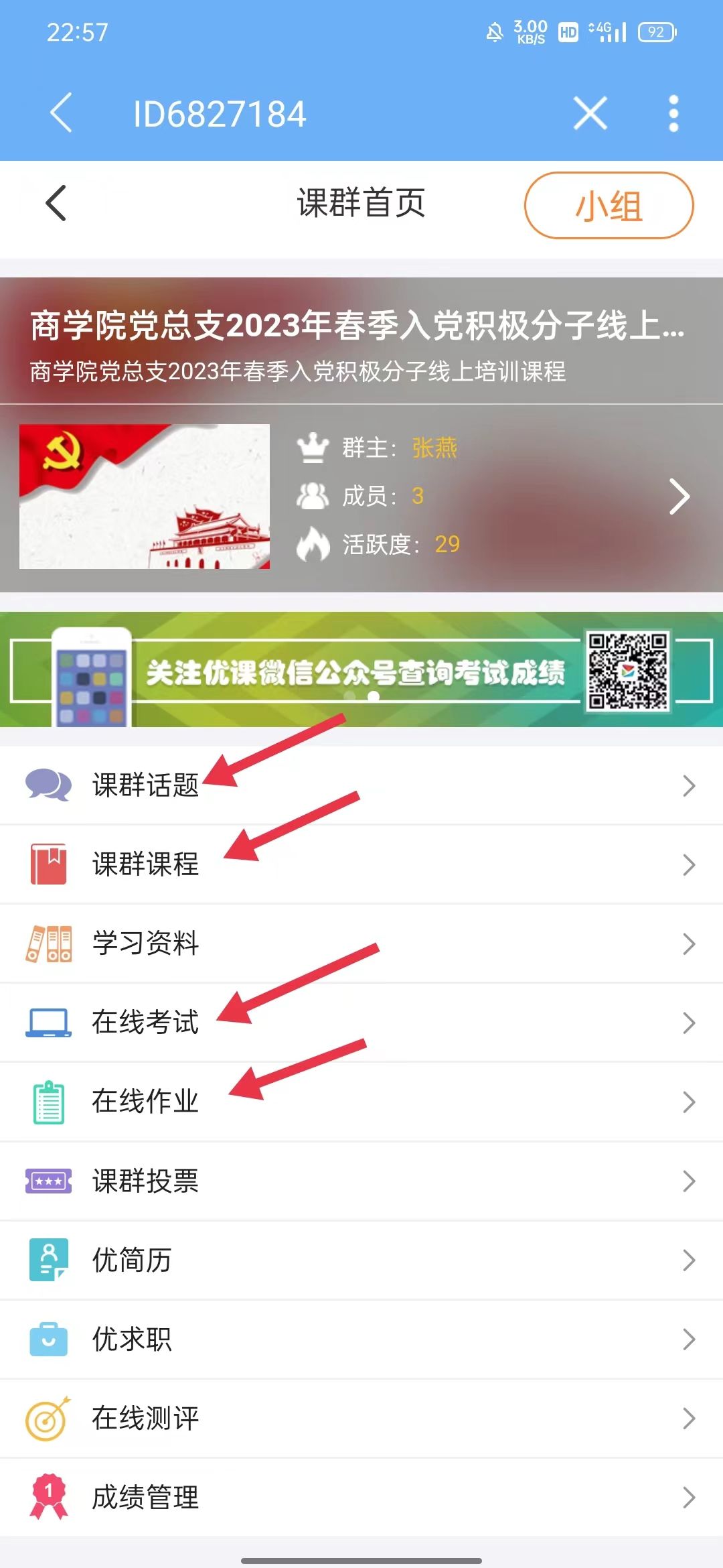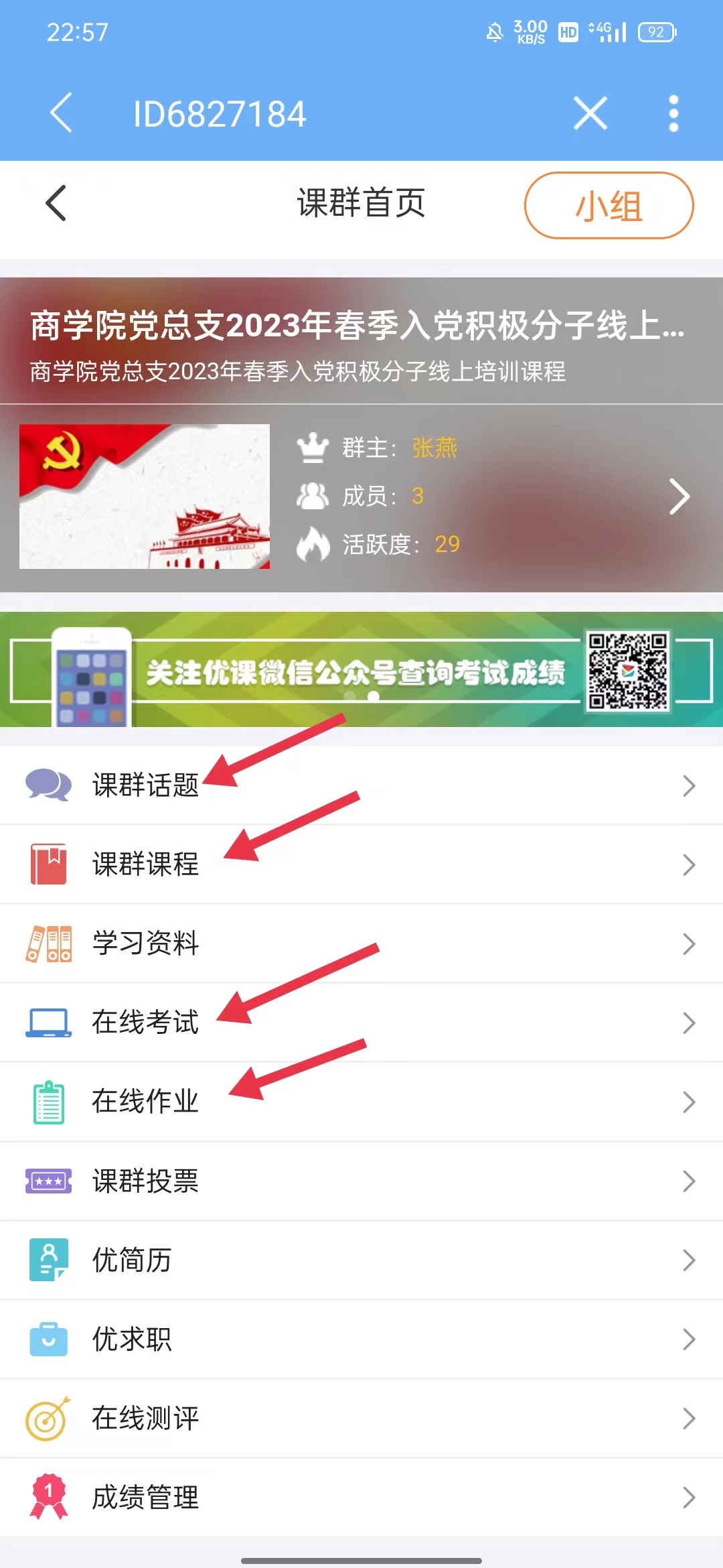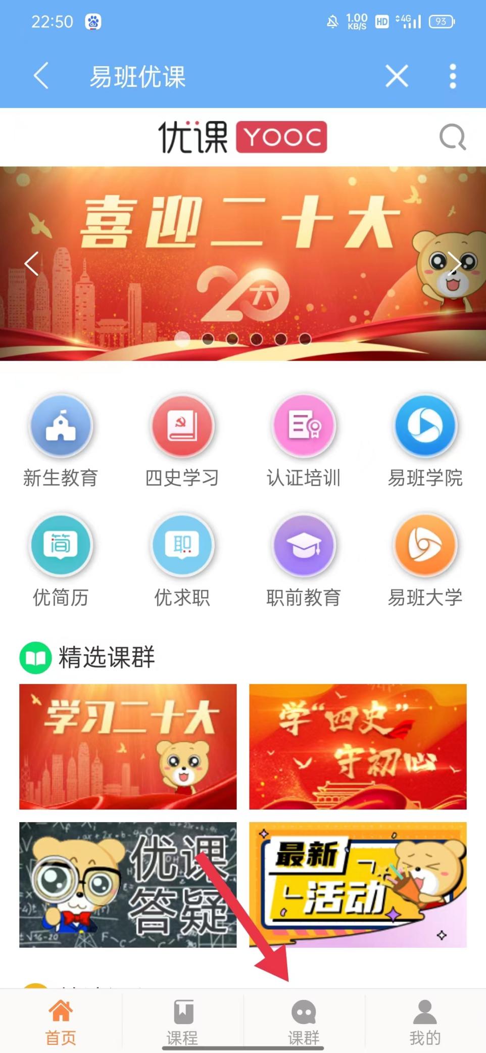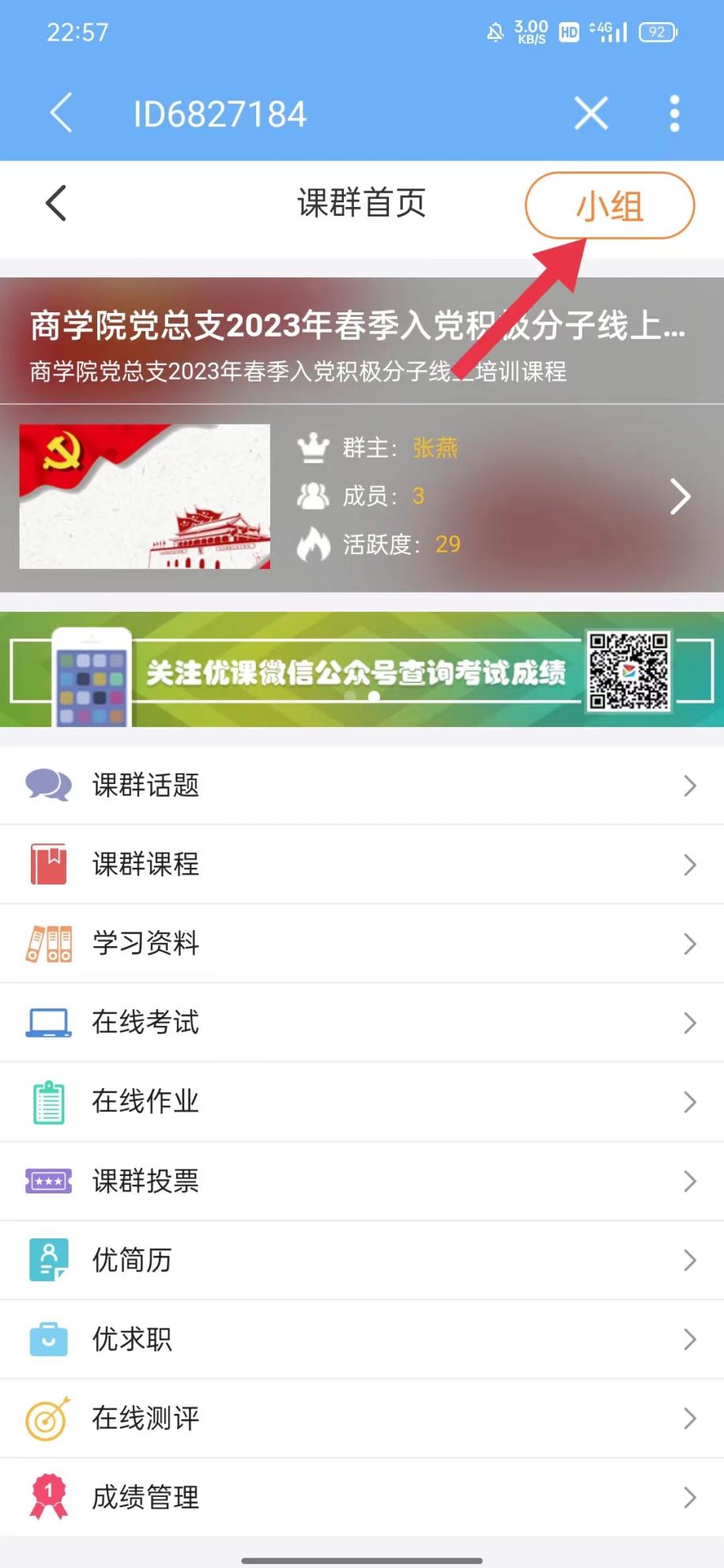 ③在个人主页中点击进入课群