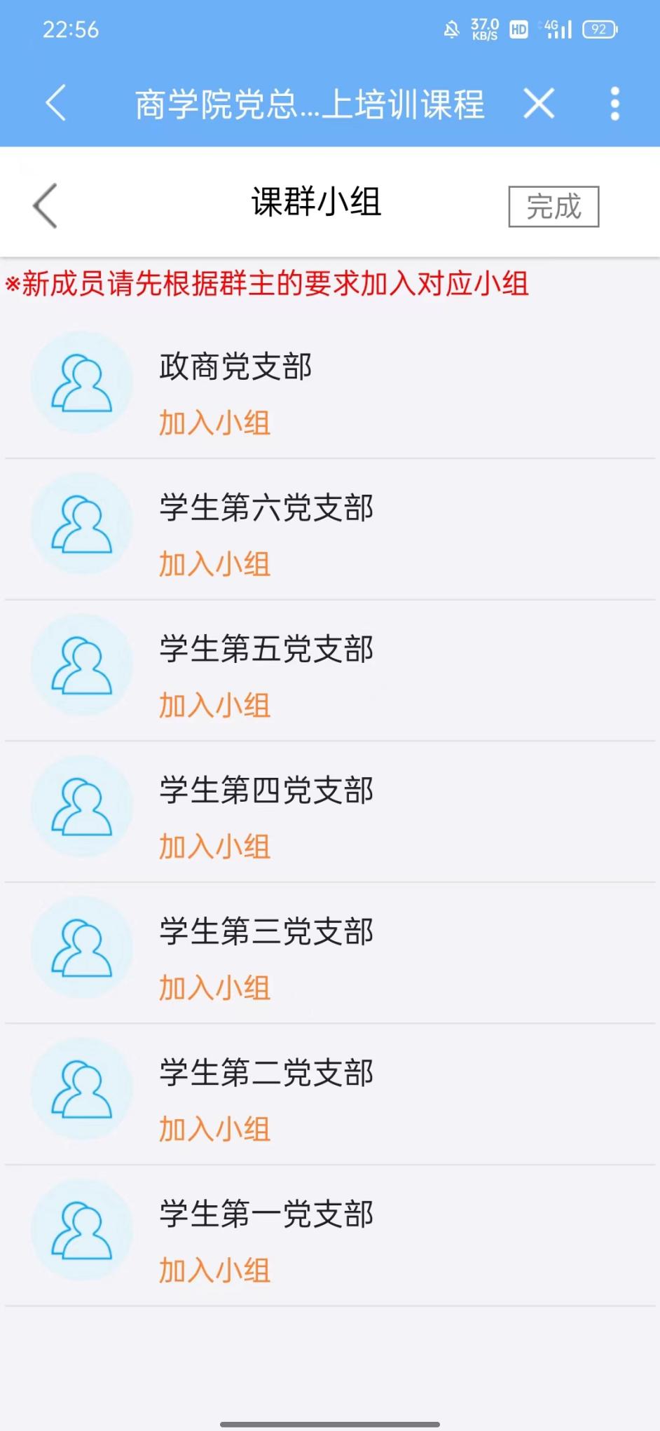 ④ 加入后在课群小组页面中选择自己所在的党支部