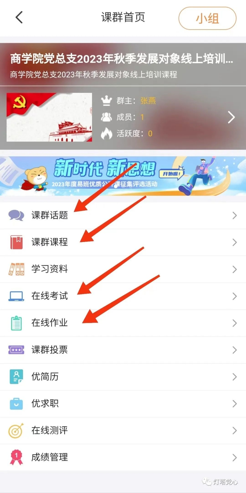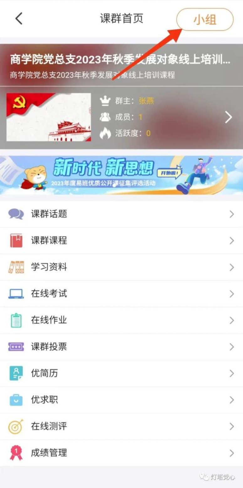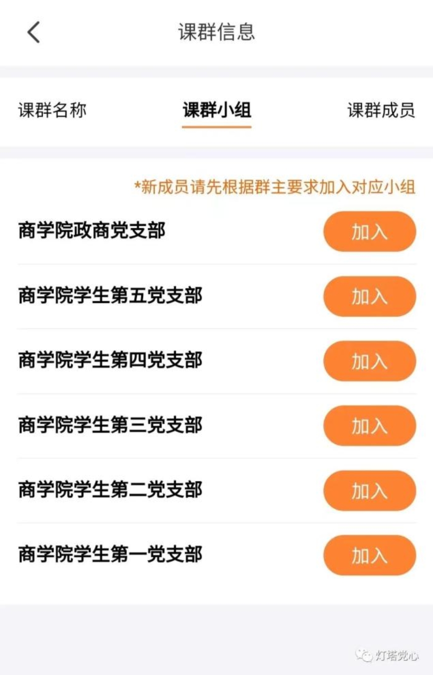 ④加入后在课群小组页面中选择自己所在的党支部