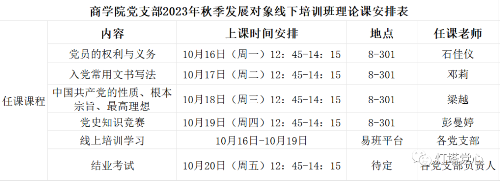 2023年秋季发展对象学习时间安排如下,请各党支部发展对象安排好时间,准时参加课程及考试。