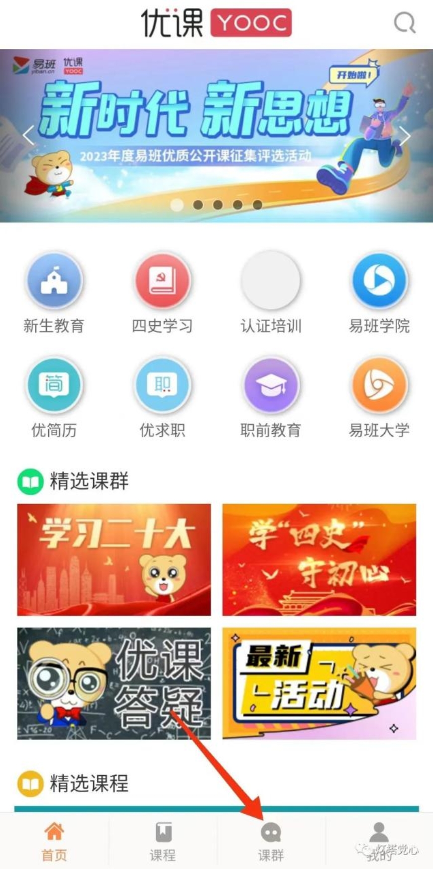 ⑤完成后在课群首页就可以看到易班的在线课程