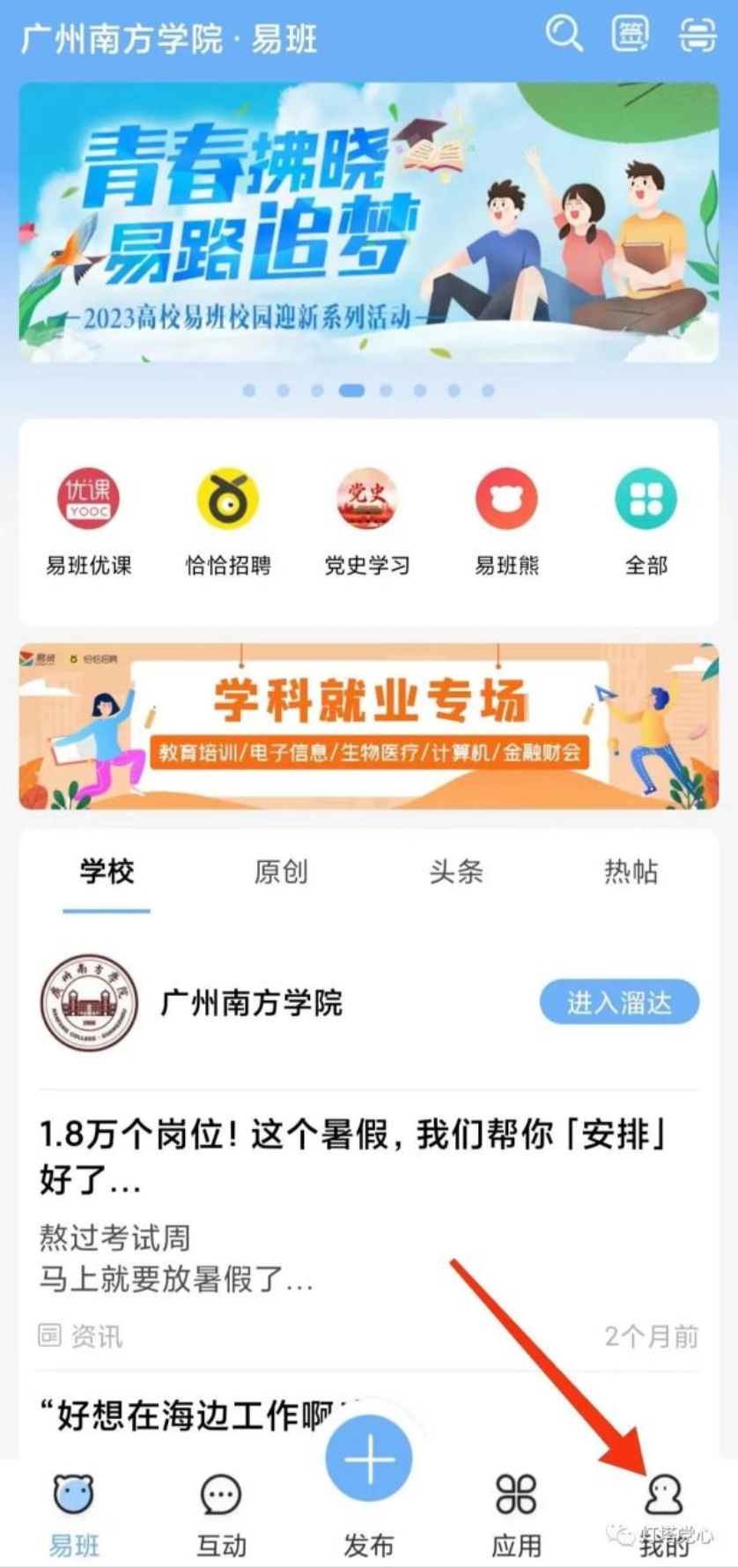 ②进入个人页面后点击下方“易班优课”