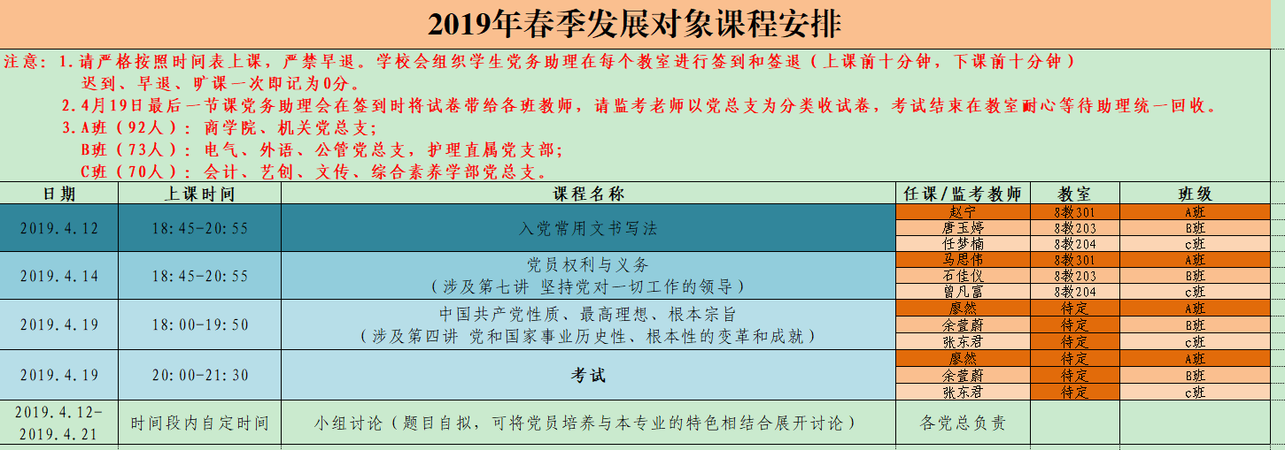 培训班理论课时间地点安排如下,请发展对象安排好时间,准时上课。