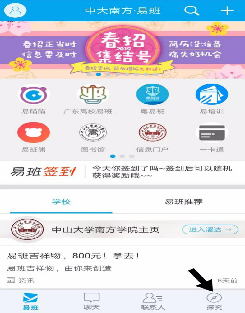 2.进入探究页面后点击下方“易班优课”