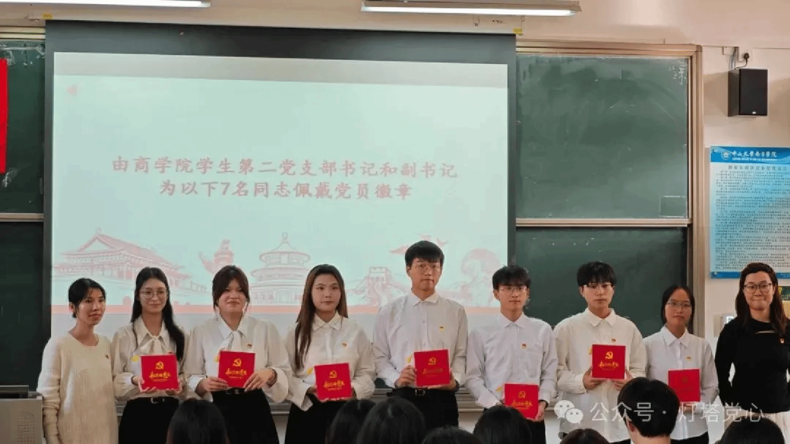 紧接着,各入党介绍人发表考察意见及党支部委员会报告了对发展对象的审查情况,经与会正式党员无记名投票表决,最后同意接收胡梓莹等7名同志为中共预备党员。williamhill中文学生第二党支部书记张燕老师宣读了预备党员预备期及入党介绍人职责表决后,与裴丹丹老师为7名预备党员同志佩戴党员徽章,颁发政治生日卡。