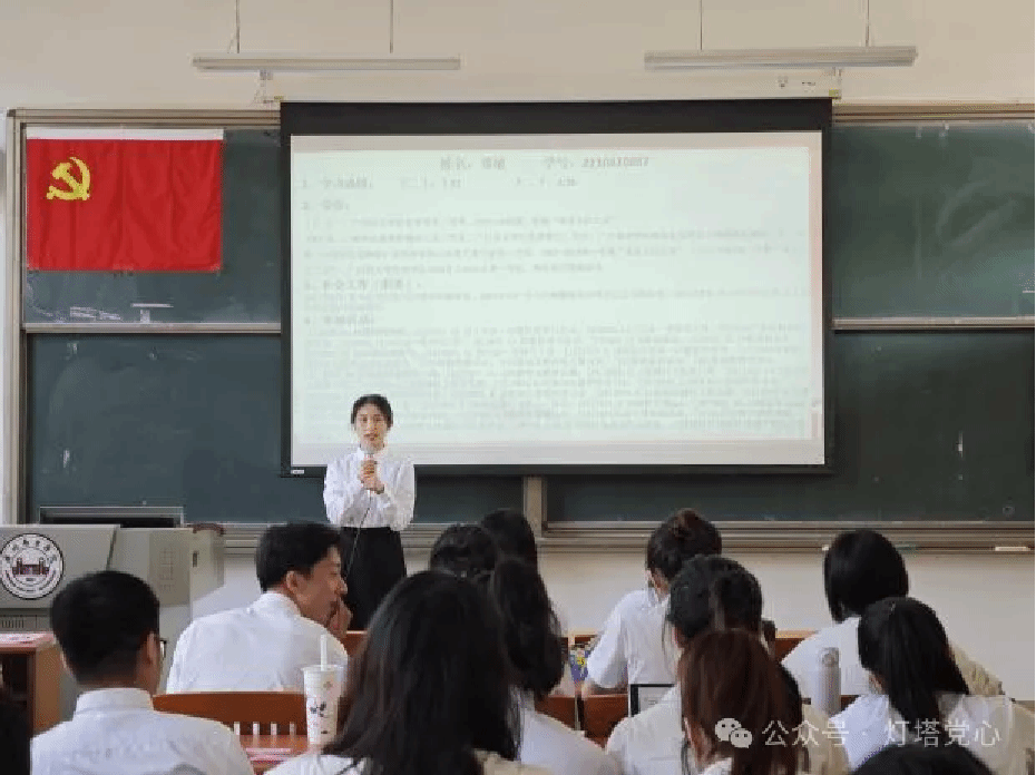 党建工作助理李洋同志宣读会议考勤情况,党建工作助理许诺同志就会议纪律做出强调,宣布会议流程和介绍到场老师后,大会正式开始。