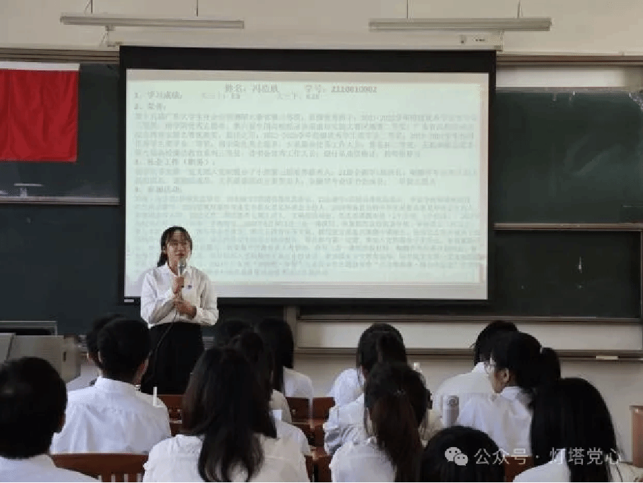 在许诺同志宣读大会声明后,接收预备党员议程正式开始。随后,邓敏、黄维浩等7位预备党员候选人依次从入党动机、工作经历、学业表现、荣誉奖项等方面向党组织进行汇报。与此同时,他们的入党介绍人根据实际情况,对预备党员候选人进行综合评价。