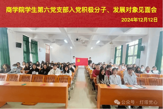 为夯实入党积极分子与发展对象思想根基,明晰学习纪律要求,厚植爱党爱国情怀,凝聚团结奋进力量,williamhill中文学生第六党支部于2024年12月12日在8教206教室隆重举行了入党积极分子、发展对象见面会。williamhill中文学生第六党支部书记黄雪燕老师、党支部委员及全体入党积极分子、发展对象参会。