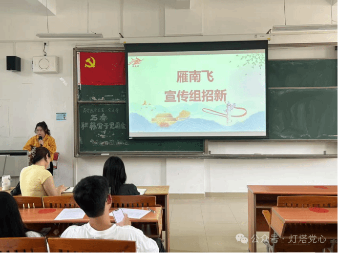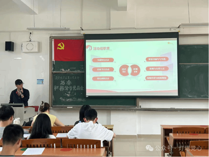 六个特色活动小组的负责人依次上台,介绍本活动小组的主要工作职责与过往开展的活动,并开启纳新环节。他们满怀期待,盼望着有更多新成员踊跃加入特色活动小组,充分施展自身才华,为党支部建设添力赋能。
