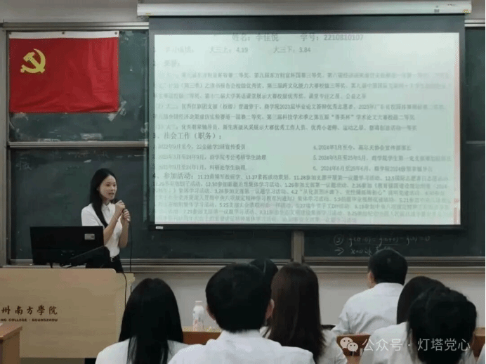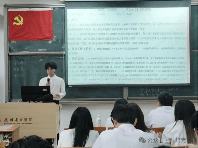 转正议程圆满结束后,陆正祥书记以“深入学习贯彻党的二十届四中全会精神”为主题,为全体党员讲授专题党课。他强调,新时代学生党员要把学习贯彻全会精神与自身成长发展紧密结合,既要筑牢思想根基,也要立足校园阵地,在学习科研中攻坚克难,在志愿服务中践行宗旨,以实际行动诠释共产党员的责任与担当。党课内容深入浅出、内涵丰富,让全体党员深受启发与教育,进一步凝聚了党支部共识、强化了使命担当。