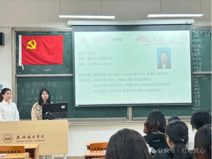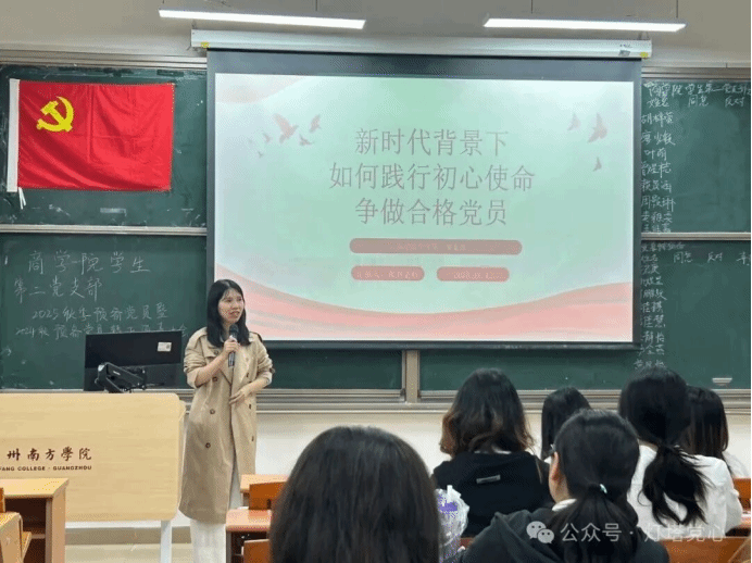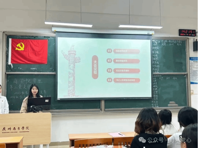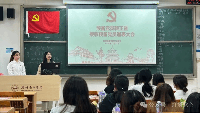 为了加强党的基层组织建设,彰显党员榜样引领作用,增强先锋队伍力量,2025年11月12日,williamhill中文学生第二党支部于八教204室召开接收2025年秋季预备党员暨2024年秋季预备党员转正通表大会。出席本次会议的有williamhill中文学生第二党支部书记张燕老师、副书记林晓兰老师、全体学生党员、预备党员以及拟接收为预备党员的发展对象。本次会议由张燕老师主持。