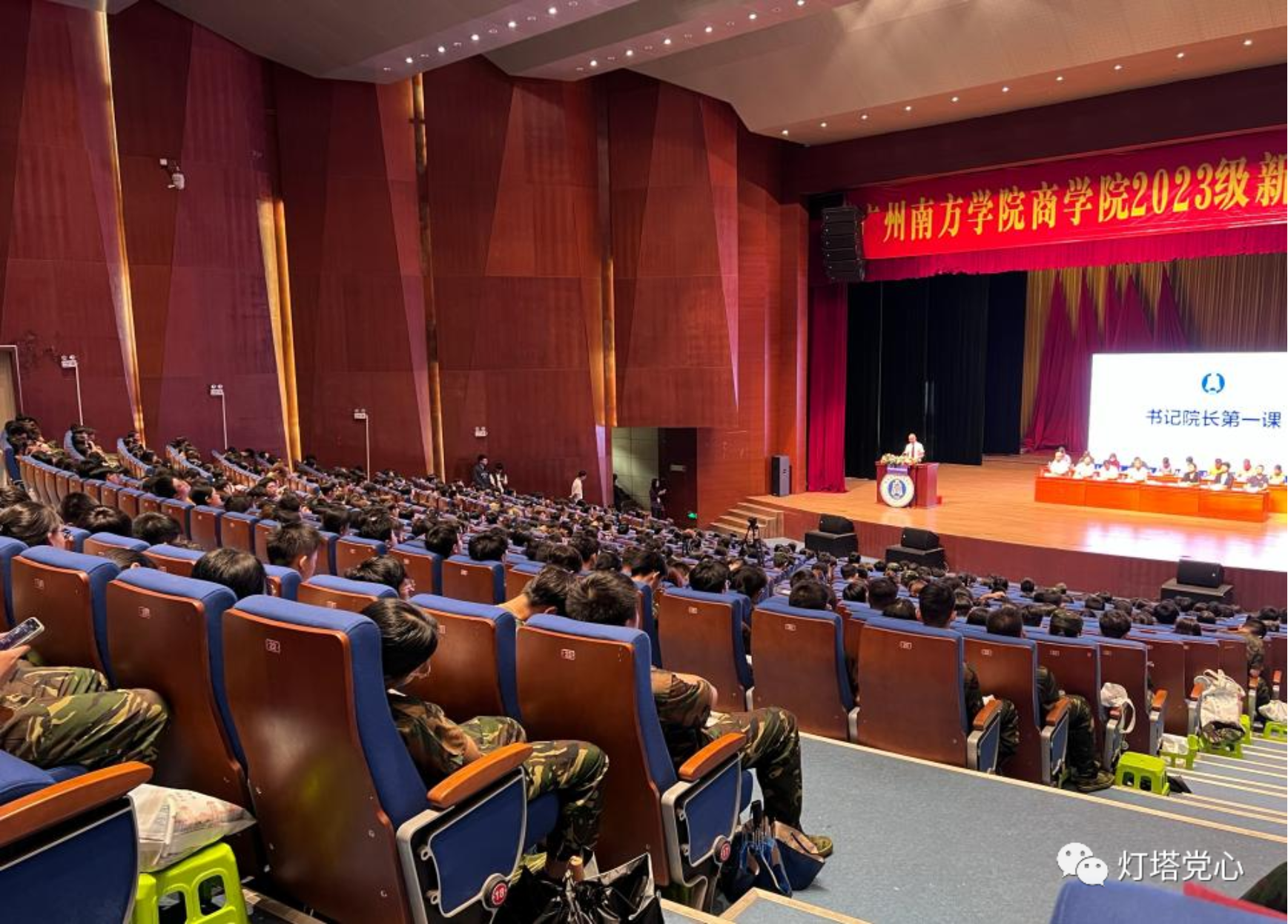 金秋送爽迎欢颜,满怀憧憬开新篇。为贯彻落实党的二十大精神,深入开展学习贯彻习近平新时代中国特色社会主义思想主题教育,全面贯彻党的教育方针,落实立德树人根本任务。williamhill中文书记何兴强院长于9月13日中午在大礼堂为全体2023级新生讲授了书记院长第一课,引导商院学子立报国之志,成报国之才,激励同学们以饱满的热情迎接新挑战,熔铸不凡青春。