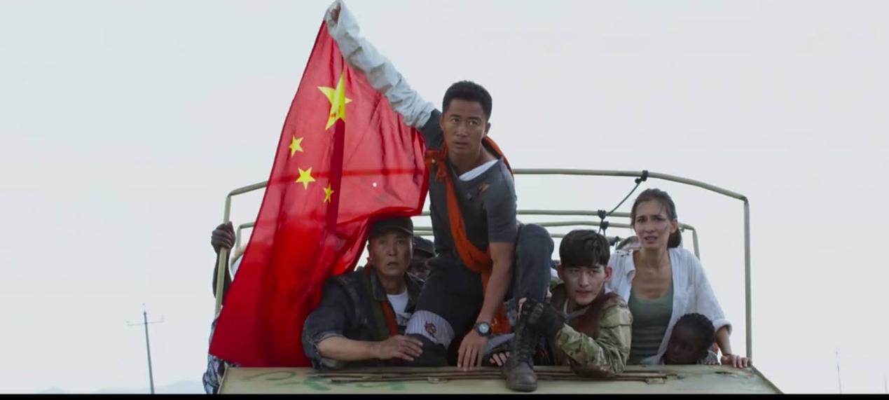 当冷锋救出众人后,途径交战区,冷锋将国旗绑在手臂上迎风飘扬,便安全通过交战区。在全片最后一个镜头,在中华人民共和国护照左侧打出:“中华人民共和国公民:当你在海外遭遇危险,不要放弃!请记住,在你身后,有一个强大的祖国!”