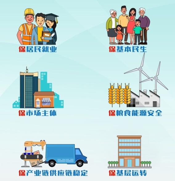 答案解析:“六保”指的是保居民就业、保基本民生、保市场主体、保粮食能源安全、保产业链供应链稳定、保基层运转。