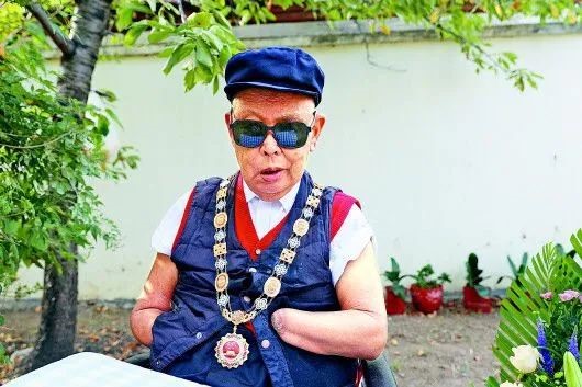 1950年在抗美援朝战争中,一次战役中身负重伤,双腿膝盖以下、双手手腕以上截肢,失去左眼,成了一级伤残军人。