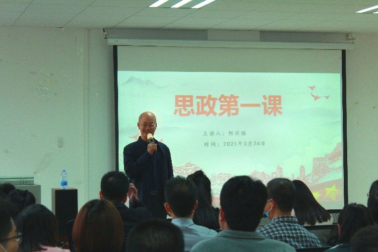 2021年是中国共产党建党一百周年,百年风雨,百年历程,不变的是初心,不忘的是使命。为深入学习贯彻习近平总书记关于“四史”的重要论述,贯彻落实习近平总书记在党史学习教育大会上的重要讲话精神,williamhill中文党总支书记何兴强教授于3月24日周三下午17:00在9教101向williamhill中文全体教职工讲授了第一堂思想政治理论课。
