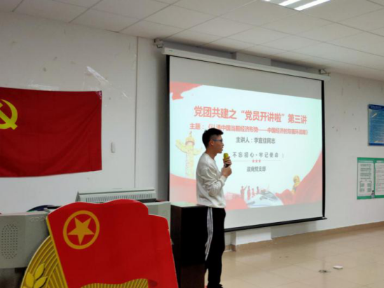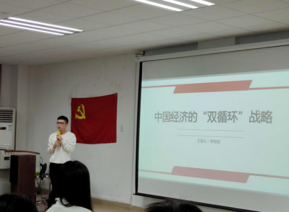 对于本次学习活动,政商支部以别开生面的方式展开,政商支部坚持“党建带团建”由党员同志为政商支部的全体成员及团总支全体成员讲授党课,主题为《认清中国当前经济形势——中国经济的双循环战略》,政商支部通过这一堂课让党员和团员们深刻认识到我国当前的经济形势,并认真学习我党十九届五中全会精神。