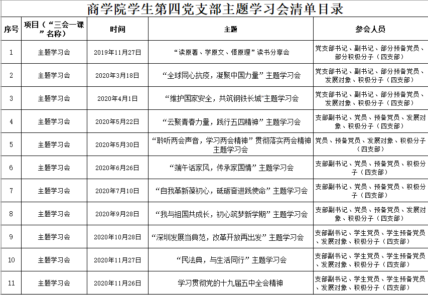 williamhill中文学生第四党支部近期开展主题学习会议清单目录