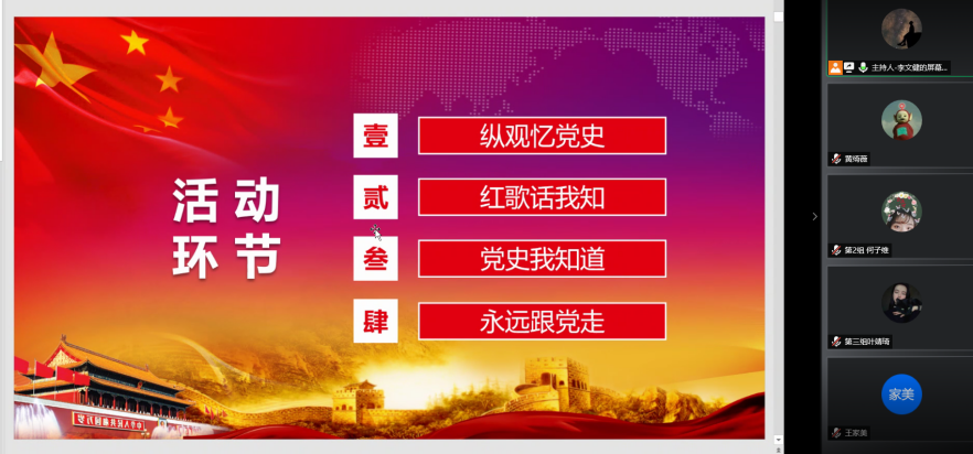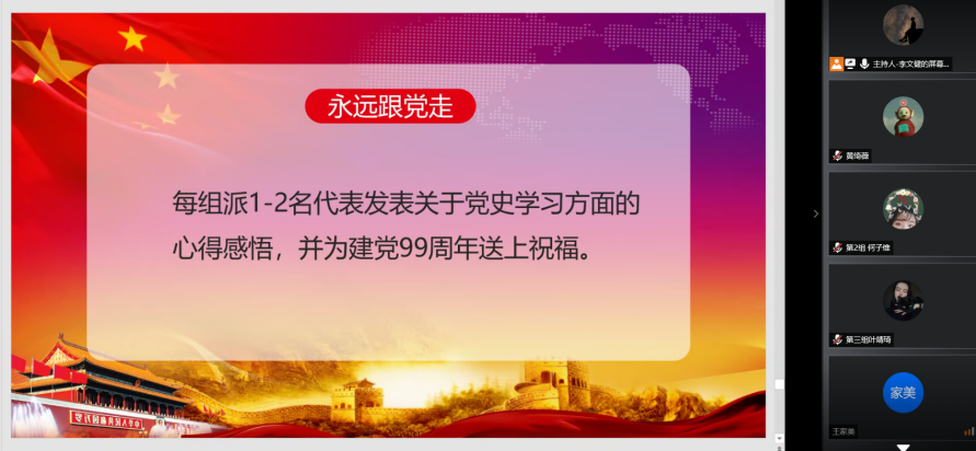 每个小组派出代表轮流发表关于党史学习方面的心得感悟,大家对中共一大的召开细节感受颇深,领会到革命先辈做出的伟大建设与对红船精神的深刻含义。同时,大家表示了对这种新颖生动的学习形式的肯定,和组员配合也十分默契,促进了彼此之间的交流。最后,大家为中国共产党99周年诞辰送上了真诚祝福。