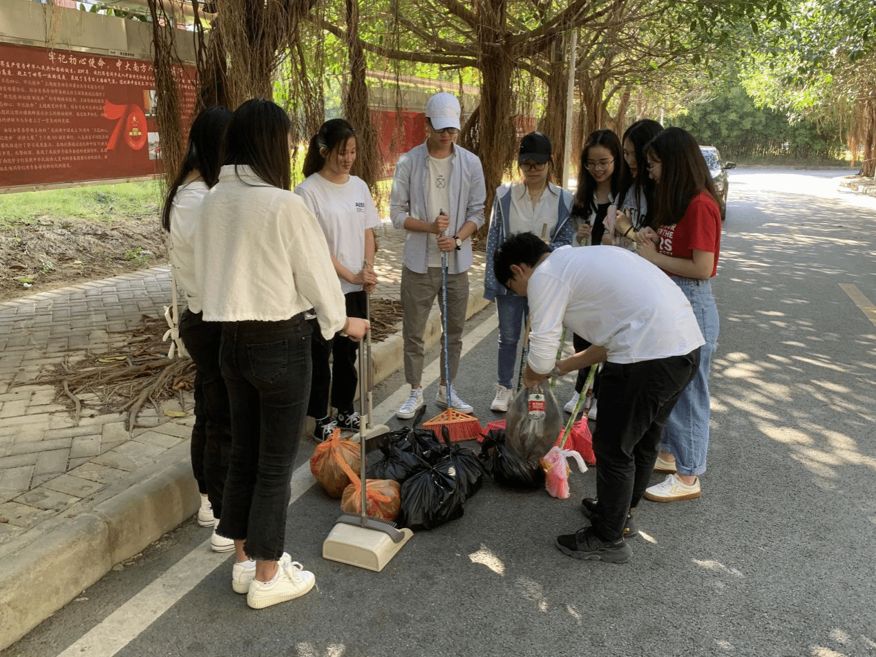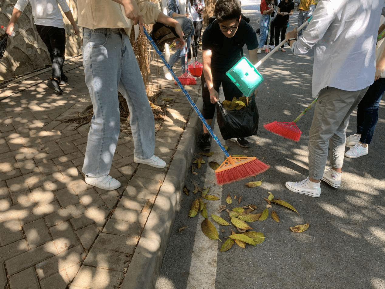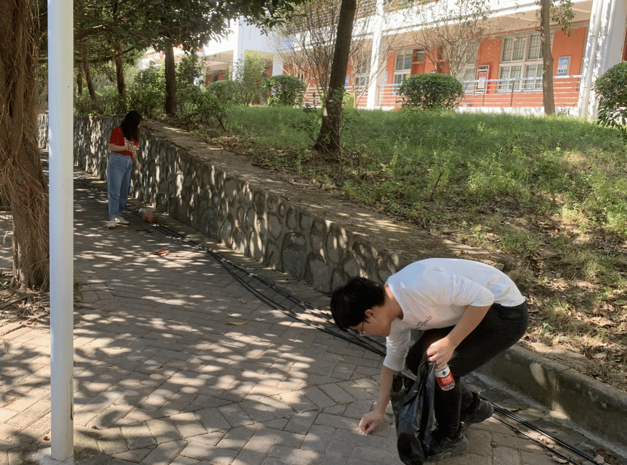 2019年11月16日下午,志愿服务小组17人对八教到九教的路段进行了垃圾清理。活动开始前,组长将大家分成两批,一批处理九教长廊的垃圾,一批清扫八教和九教之间的落叶。在活动过程中,小组成员积极参与,每个人都在全心全意做事,沉浸在服务校园的工作中。