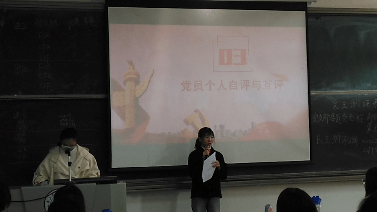 会议第三项议程为党员个人自评与互评。会上,谭筱琦同志等37名党员依次上台演讲,他们依照党章党规等从各方面剖析自身的不足,与会党员根据自评党员的实际情况给予中肯的建议,促进党员积极改进和成长。会议第四项为民主评议党员,与会党员依照测评标准对其他党员进行民主评价。