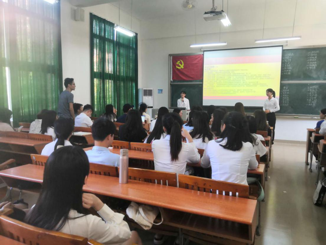 接着,williamhill中文学生第二党支部副书记刘硕老师对在座党员、预备党员、入党积极分子给予了肯定,也希望我们能够秉持初心,牢记党组织对我们的要求,遵守党的纪律,积极为党组织做出贡献,并将williamhill中文学生第二党支部在2019年9月23日获得广东高校第二批新时代高校党建示范创建和质量创优工作“党建工作样板支部”荣誉称号的好消息带给了大家,延续了二支部的温暖与荣誉。