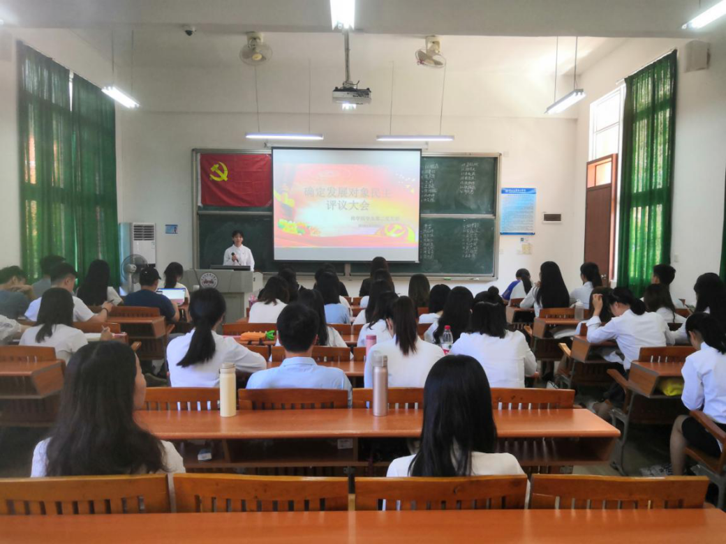 会议的第二项内容是宣布发展对象名单。由与会党员秉承着客观公正的态度对31名入党积极分子的现场演讲及平时表现进行评分。评分根据主要来自党章测试、学习成绩考核、支部考察、在校表现考察以及党员民主评议五个方面。