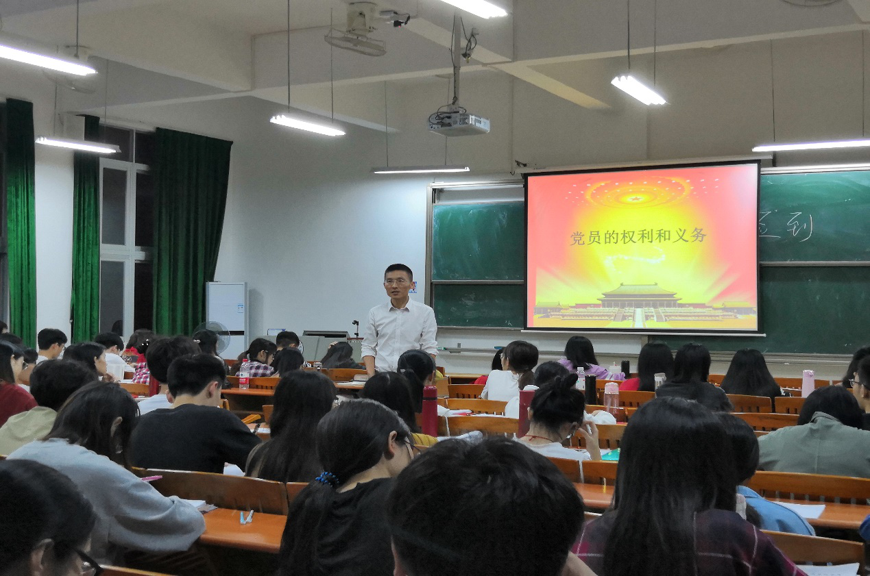 紧接着廖然老师强调到,作为发展对象,虽然还未成为正式党员,但应该以正式党员的标准严格要求自己,做好服务群众的工作。而想要做好服务群众,第一,要胸怀全局,有大局意识,能处理好国家、集体和个人利益的关系;第二,要切实做好本职工作,即勤奋学习、追求上进,平时多参加各类有益的活动,在日常工作中多做贡献。要乐于奉献,乐于付出,对班级、学校乃至社会贡献出自己的一份力量。第三,要在构建和谐文明社会过程中起带头作用,时刻注意自己的言行是否有符合党章要求和人民群众的根本利益。