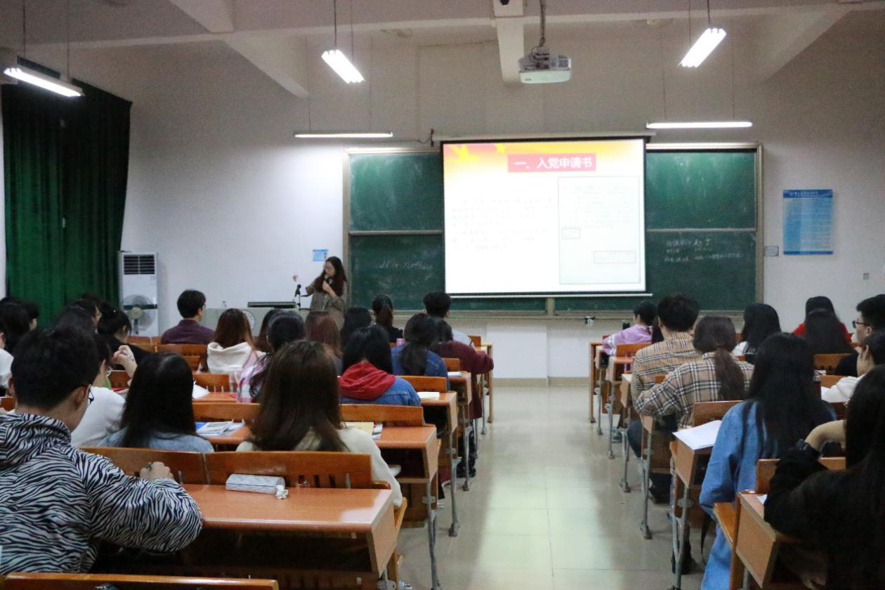 培训第一课,赵宁老师为发展对象讲解如何书写入党常用文书,并向大家强调所需填写的入党材料的重要性和严肃性。入党材料是党支部观察记录该发展对象在递交入党申请书以来在思想上的变化情况,从而能够及时地对该发展对象的培养做出相应调整,是党支部了解每一位入党成员的重要途径。保证上交材料的正确性和真实性,也是党组织对每位入党成员的一种诚信的考验。