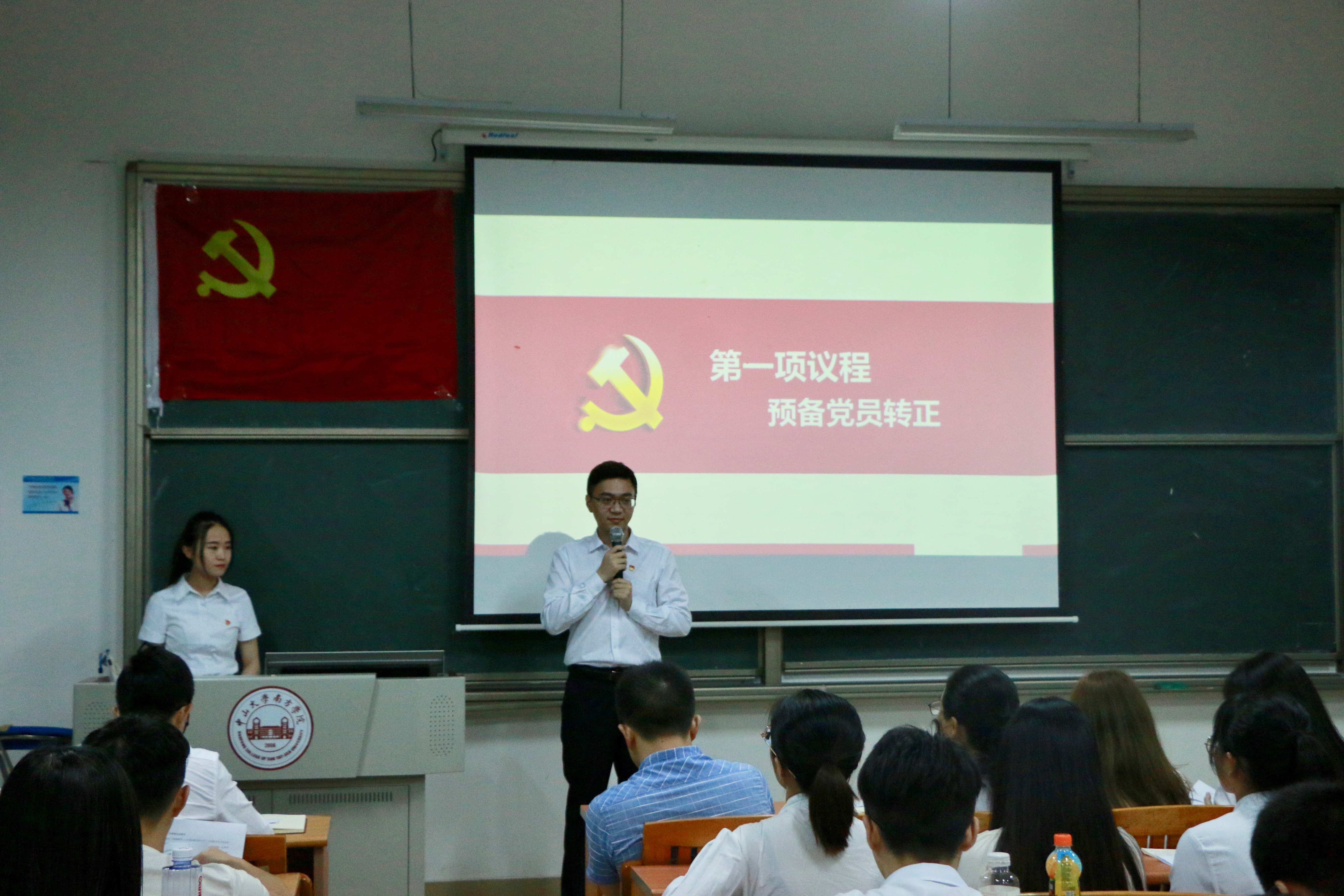 2019年4月26日晚上18:30,williamhill中文学生第一党支部在8-205召开2018年春季预备党员转正暨接收2019年春季预备党员通表大会。出席本次大会的有支部书记杨小松老师,副书记石佳仪老师,胡敬成老师以及支部的正式党员,预备党员和发展对象。本次大会由主持人郑纯华同志主持。