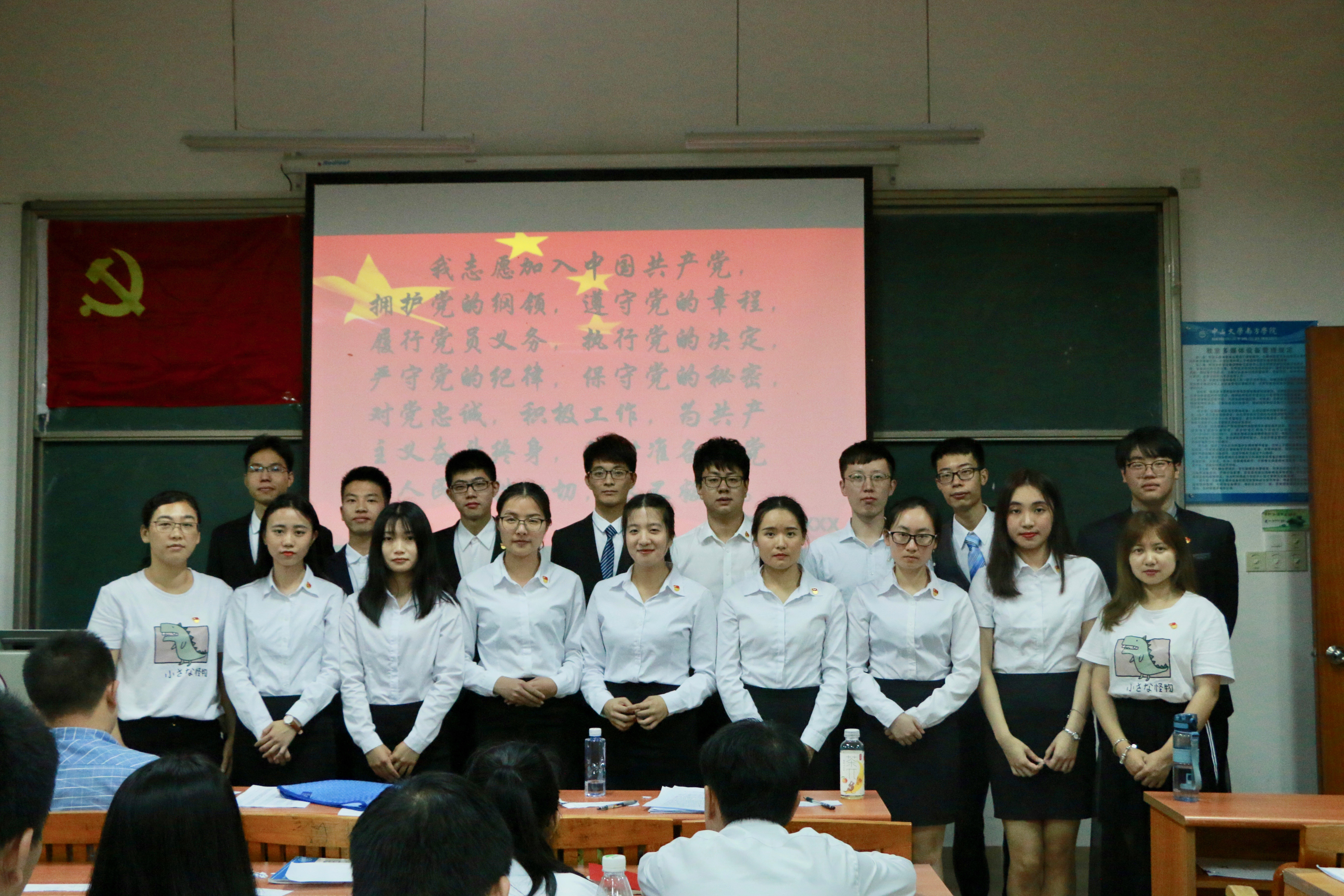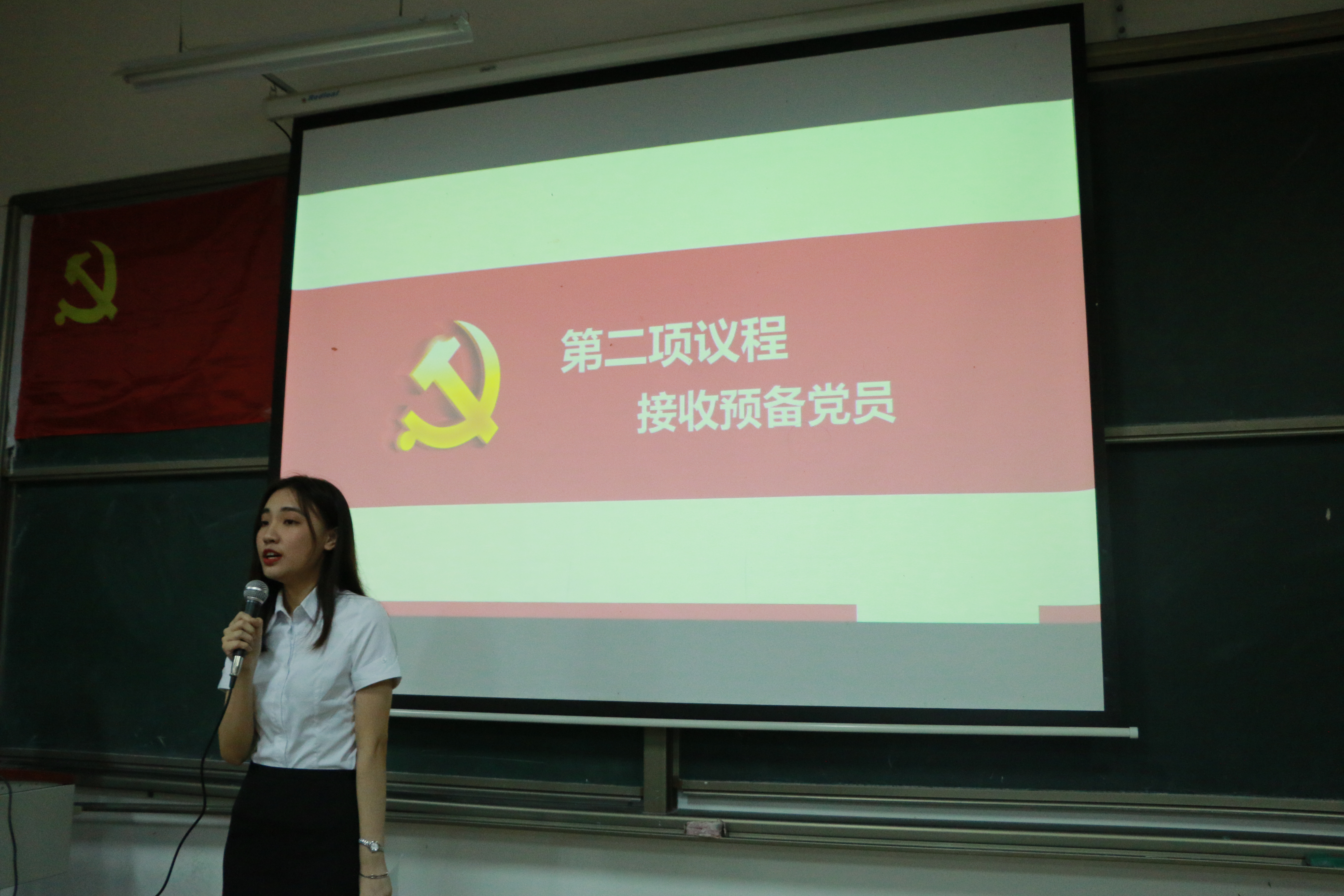 紧接着,吴锦洵同志带领新接收的预备党员和在座的全体党员宣读了入党誓词,并由杨小松老师和石佳仪老师一起为新接收的预备党员佩戴党徽。