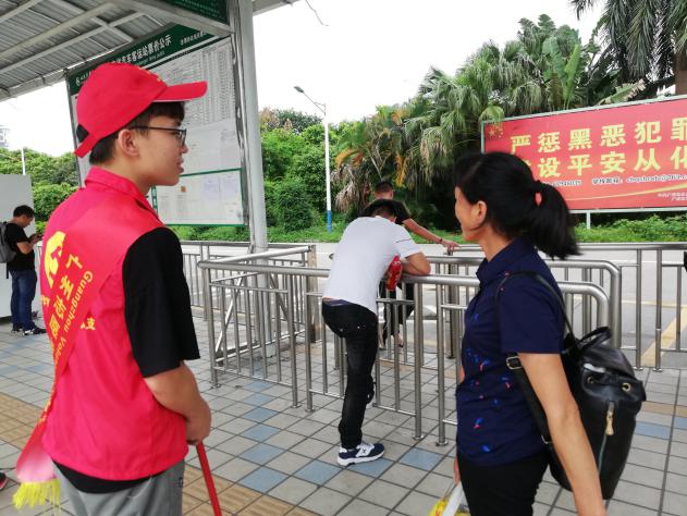为最后这学期最后一次的服务工作,四支部的预备党员和积极分子在到达从化汽车站并询问了汽车站的工作人员关于志愿者服务工作的流程以及注意事项之后,迅速换装,身穿红马甲,头戴小红帽,带着满满的热情 展开了服务工作。