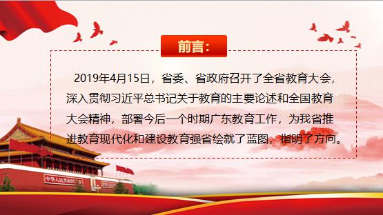 3.准确把握全省教育大会精神,奋力开创新时代广东教育强省建设新局面。