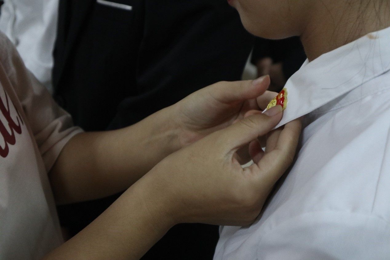随后由各支部书记带领党员、预备党员进行入党宣誓,并向预备党员颁发党徽。